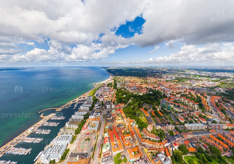 Хельсингборг, Швеция Панорама города летом с портовой инфраструктурой Оресунский пролив. Вид с воздуха