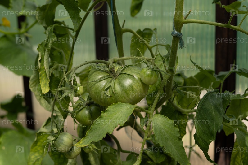 Помидор томат зеленый незрелый в теплице, выращивание сельскохозяйственной культуры