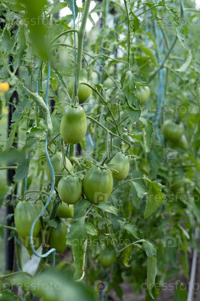 Помидор томат зеленый незрелый в теплице, выращивание сельскохозяйственной культуры