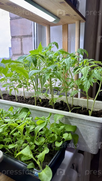 Рассада в горшке на подоконнике в доме, домашнее выращивание, весенняя подготовка к сезону