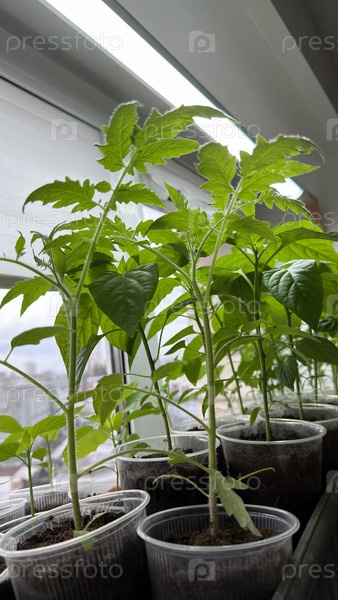 Рассада в горшке на подоконнике в доме, домашнее выращивание, весенняя подготовка к сезону