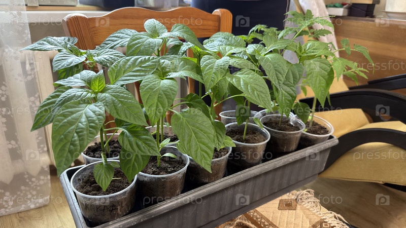 Рассада в горшке на подоконнике в доме, домашнее выращивание, весенняя подготовка к сезону