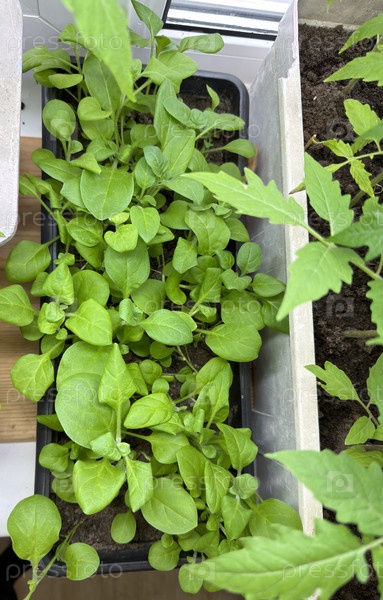 Рассада в горшке на подоконнике в доме, домашнее выращивание, весенняя подготовка к сезону