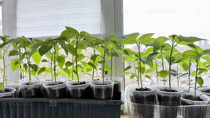 Рассада в горшке на подоконнике в доме, домашнее выращивание, весенняя подготовка к сезону