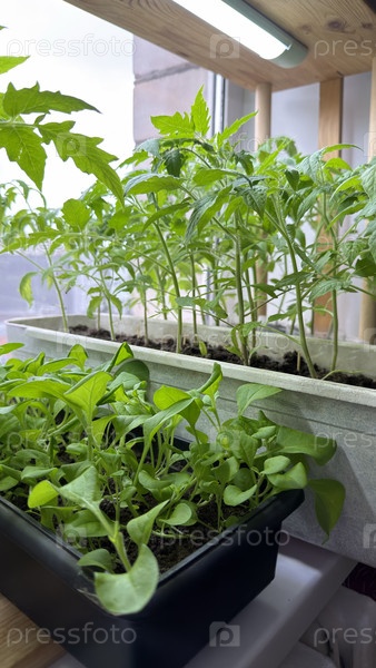 Рассада в горшке на подоконнике в доме, домашнее выращивание, весенняя подготовка к сезону