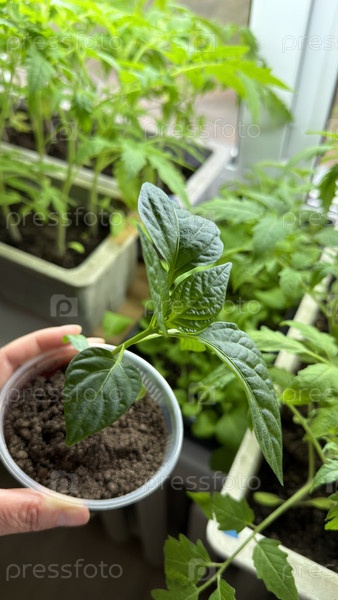Рассада в горшке на подоконнике в доме, домашнее выращивание, весенняя подготовка к сезону