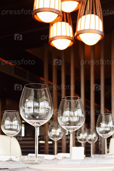 Элегантные бокалы для вина лежат на чистом белом столе