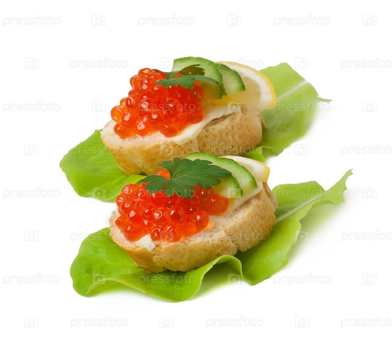 Бутерброд с красной икрой, сливочным маслом и огурцом