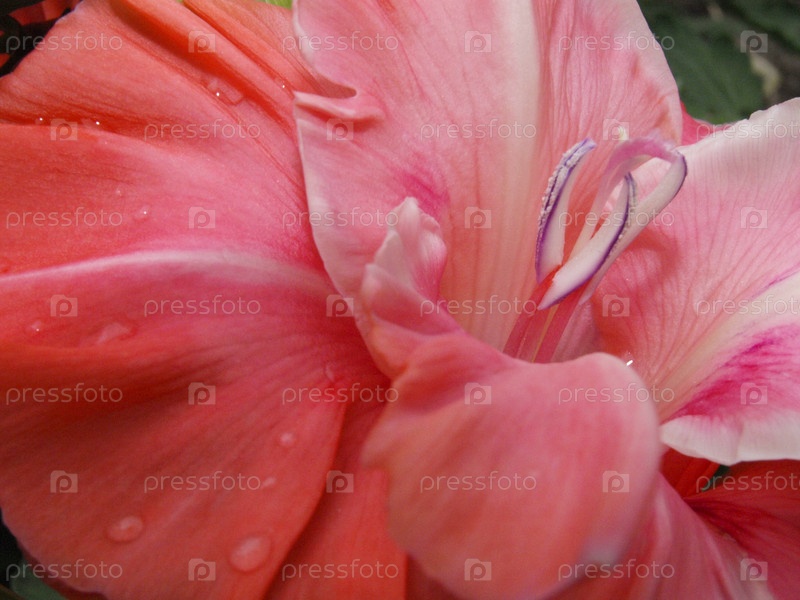 Красный цветок гладиолуса с каплями воды
