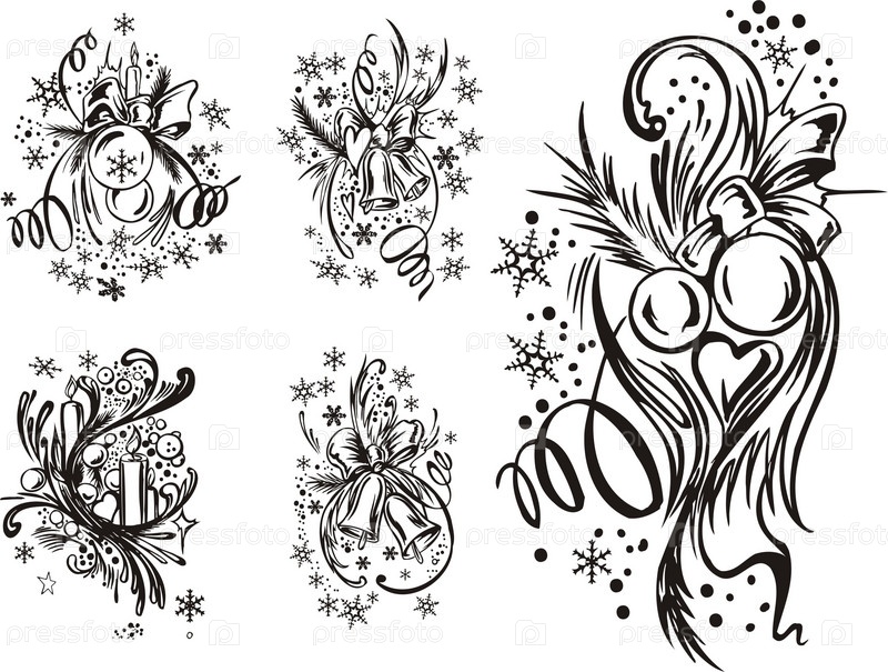 Черно-белые рисунки рождественских украшений