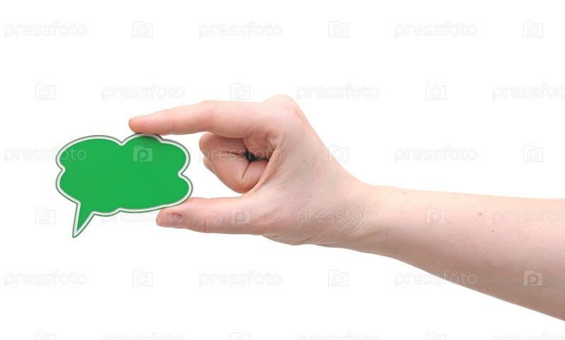 Рука с зеленым пузырем для текста