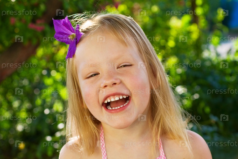 Счастливая девочка с цветком в волосах