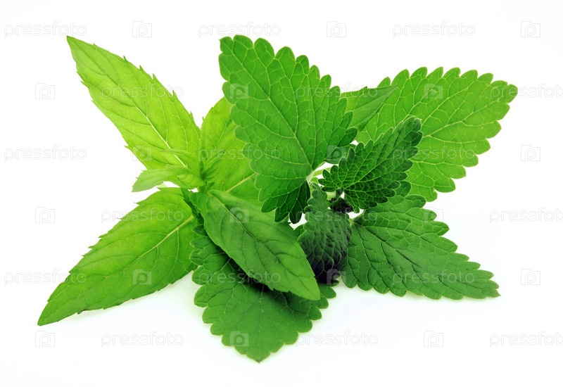 Листья мелиссы и мяты на белом фоне