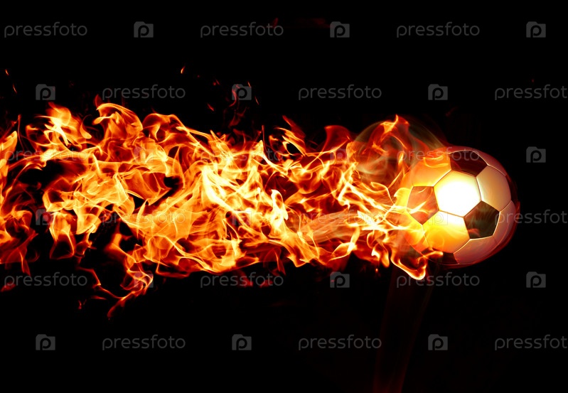 Огненный футбольный мяч на черном фоне