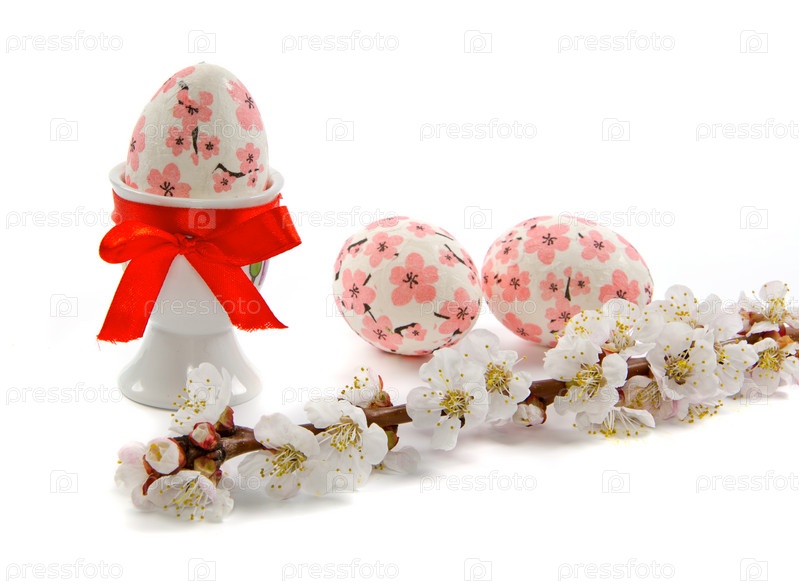 Ветка абрикоса и пасхальные яйца