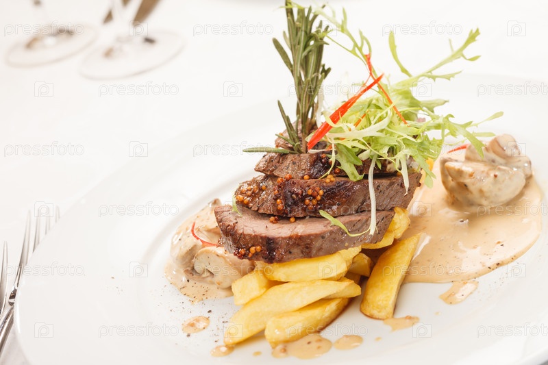 Стейк из говядины с жареными грибами