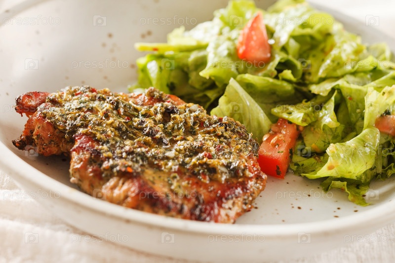 Жареный стейк с салатом