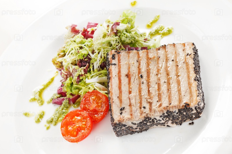 Стейк из лосося с салатом