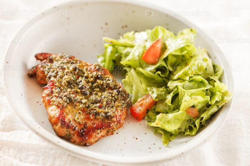 Жареный стейк с салатом