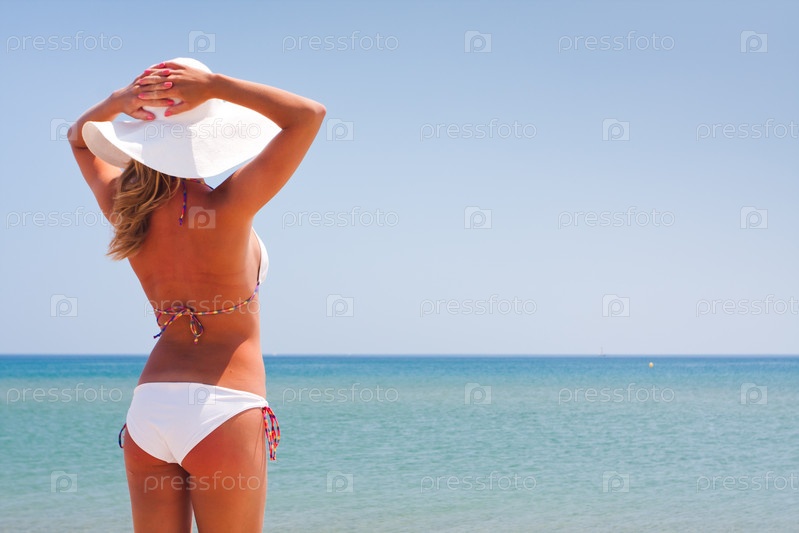 Молодая женщина в бикини на пляже
