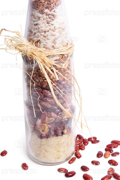 Декоративная бутылка с фасолью