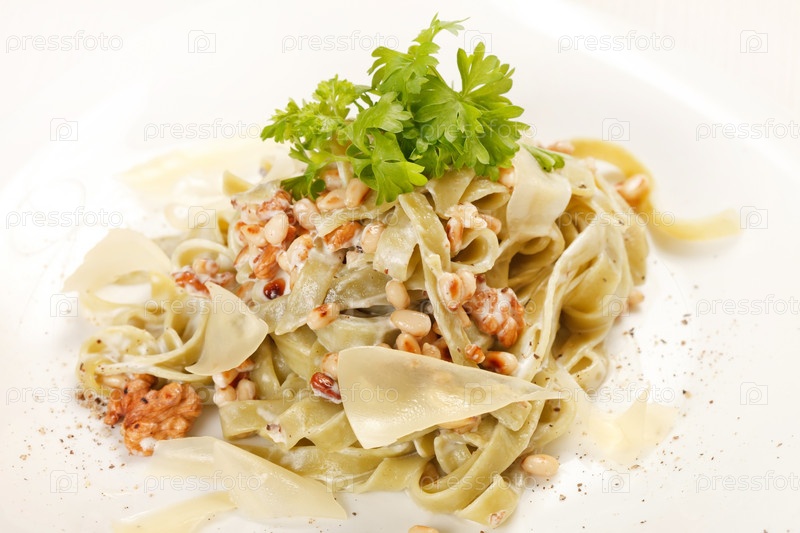 Макароны с сыром и кедровыми орехами