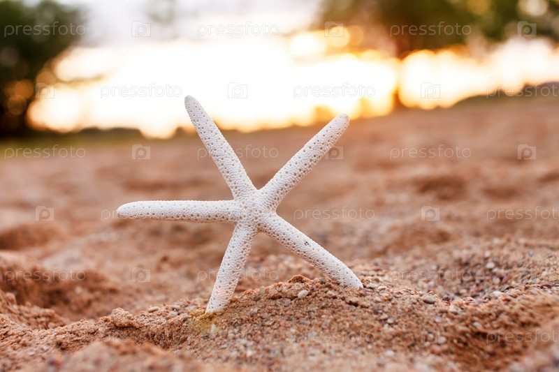 Красивая морская звезда на песке
