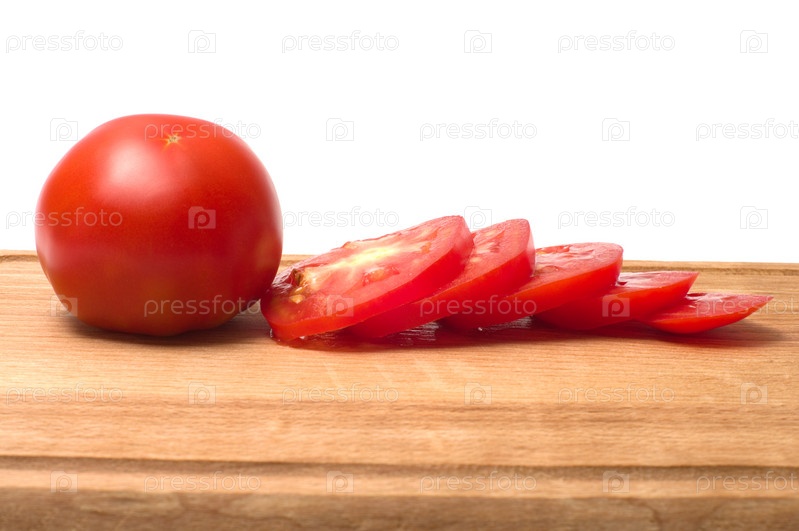 Красный нарезанный помидор на разделочной доске