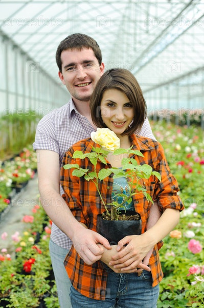 Молодая пара в парнике