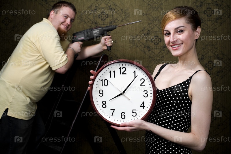 Женщина с новыми часами и мужчина с дрелью