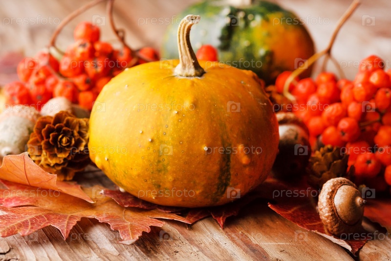 Урожай тыкв с осенними листьями