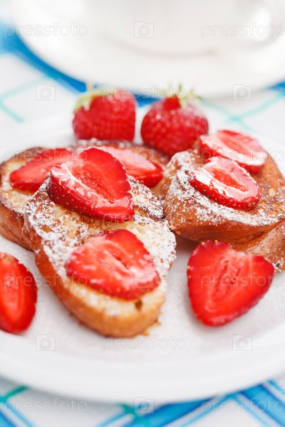 Французские тосты с сахарной пудрой и клубникой