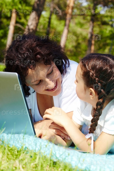 Мама и дочка отдыхают на природе