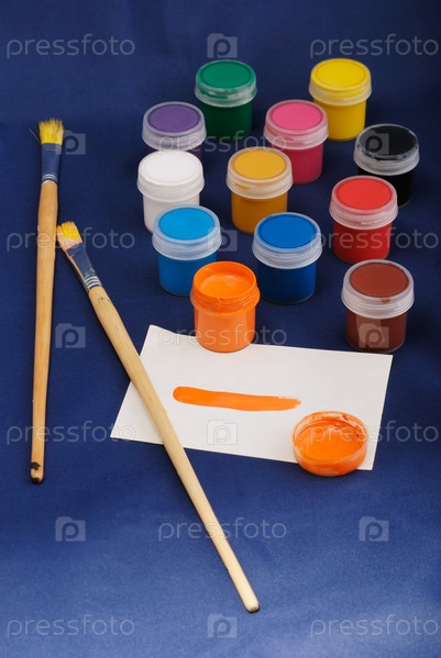 Гуашь и кисточки крупным планом