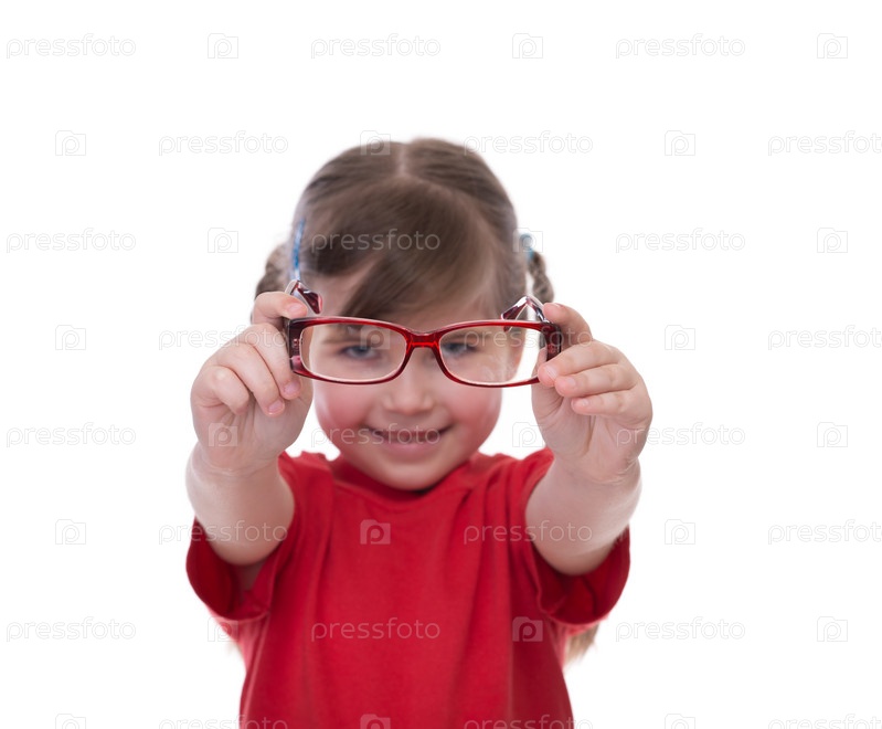 Милая девочка смотрит через очкинего