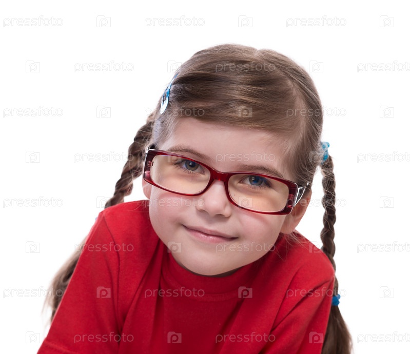 Портрет девочки в очках крупным планом