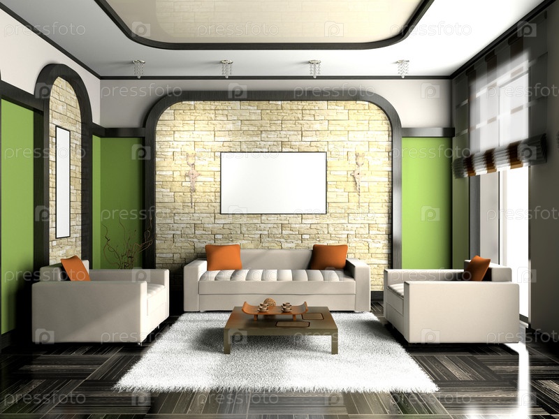 Интерьер современной гостиной, 3D