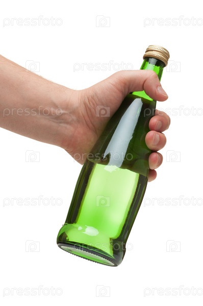 Рука с зеленой прозрачной бутылкой