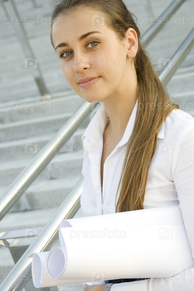 Молодая девушка с чертежами