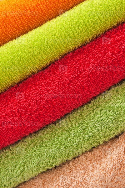 Разноцветные полотенца на белом фоне