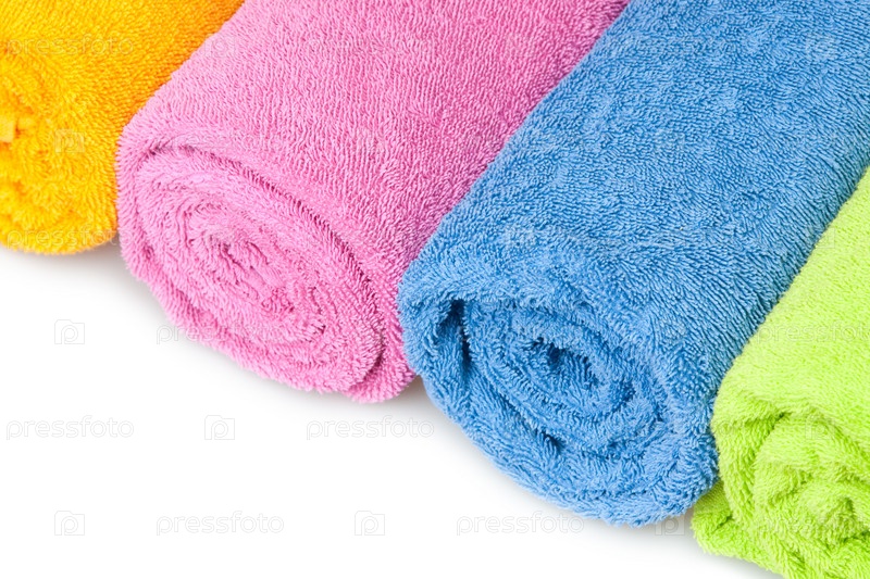 Разноцветные полотенца на белом фоне