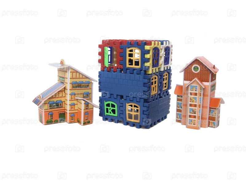 Различные поделки жилых домов из картона и пластмассовых частей лего конструктора