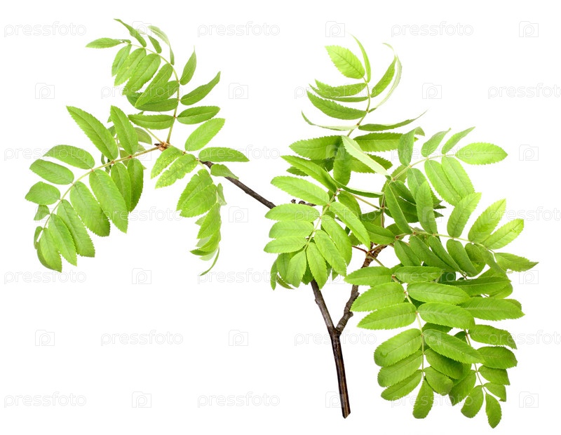 Ветка рябины с зелеными листьями