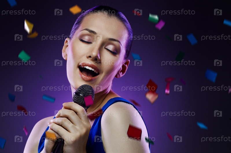 Хорошенькая девушка поет на вечеринке