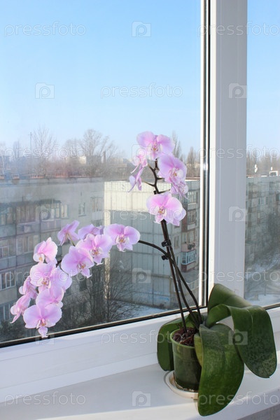 Цветущая розовая орхидея