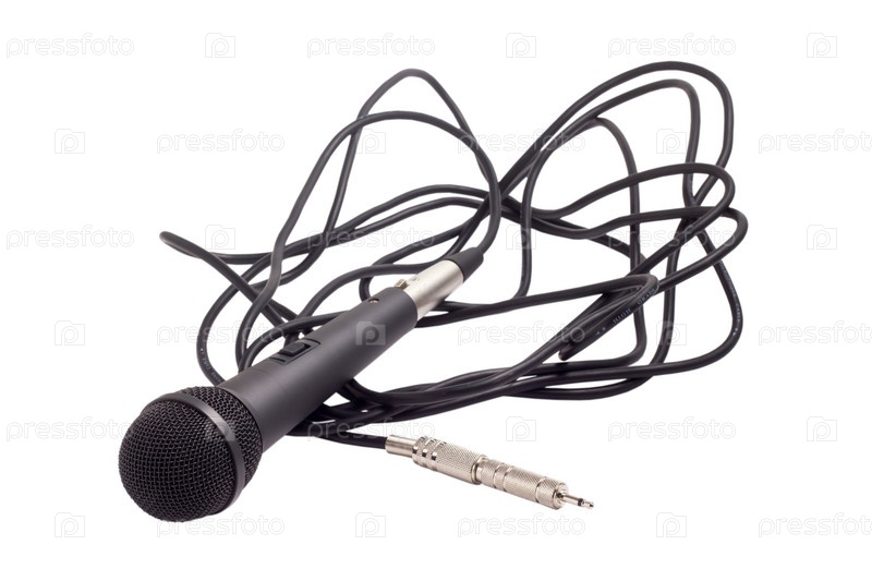 Микрофон с черным шнуром, изолированный на белом фоне с путем отсечения