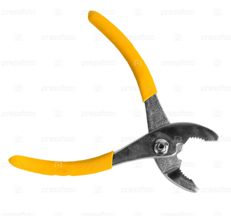 Открытые желтые плоскогубцы, изолированные на белом фоне с путем отсечения
