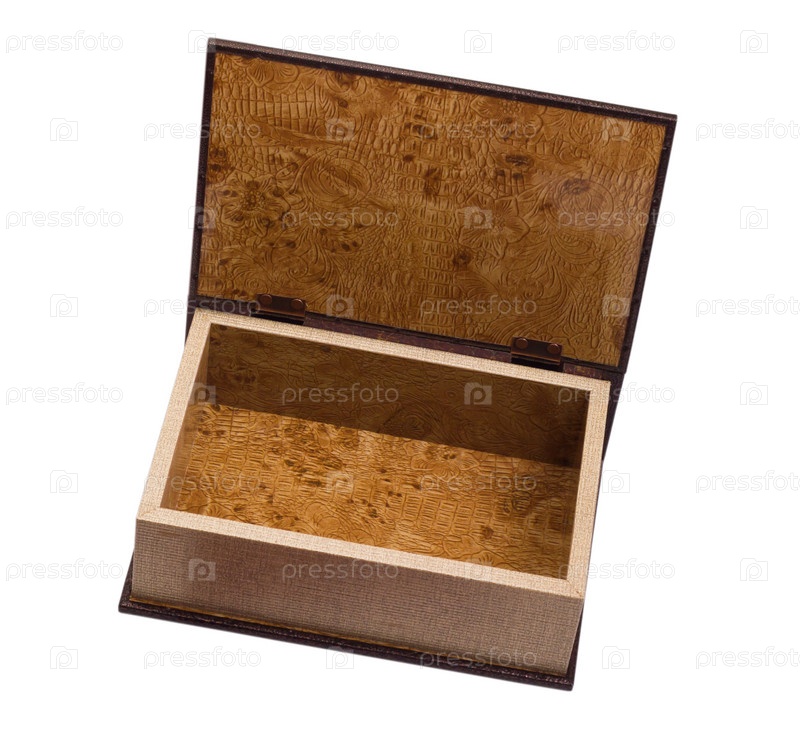 Деревянная коричневая старинная шкатулка, изолированная на белом фоне с путем отсечения