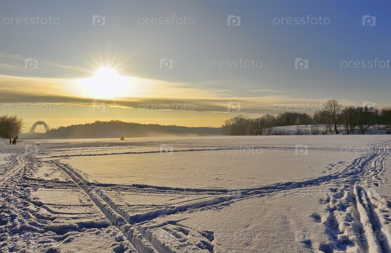 Заснеженное поле на закате