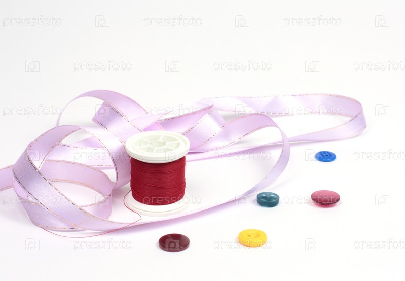 Нитки с цветными кнопками и розовой лентой